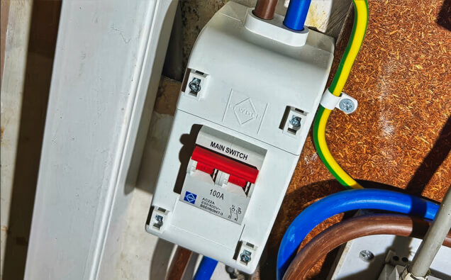 Signs that your consumer mains may need upgrading include circuit breakers frequently tripping when multiple appliances are used, dimming lights when air conditioning starts, inability to add new high-power devices like EV chargers, visible deterioration of overhead cables, or a defect notice from your network provider. Properties built before 1980 often have undersized consumer mains that cannot safely handle modern electrical demands.
