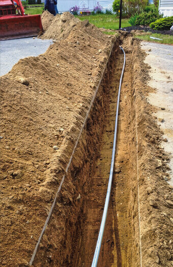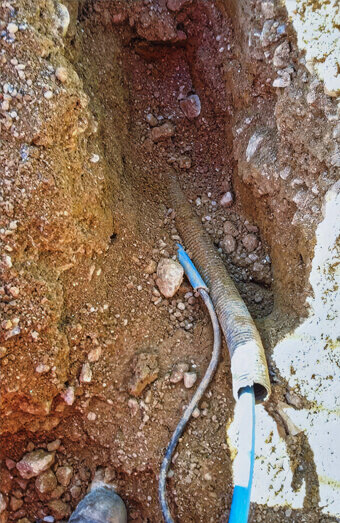Compliant trenching services and electrical-grade conduit installation for underground cabling, including proper backfill, warning tape, and compaction.