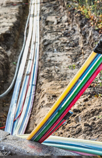 Complete installation of underground service cables from network pillars or pits to new properties, including trenching, conduit installation, and proper terminations.